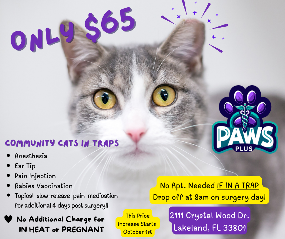 "Had such a wonderful experience at Paws Plus Lakeland! Everyone here is so kind & loving to my pets! Debbie at the front desk is super helpful & always returned my calls promptly. I brought my kitten Sushi in to get spayed & they took great care of her, minimal scarring & she was in good spirits right after surgery. (And $100 for spay is pretty inexpensive compared to many places I had researched). Then I also brought my dog Harley in for a check up & again all the nurses & Dr’s were very attentive & kind & I highly recommend this veterinary...